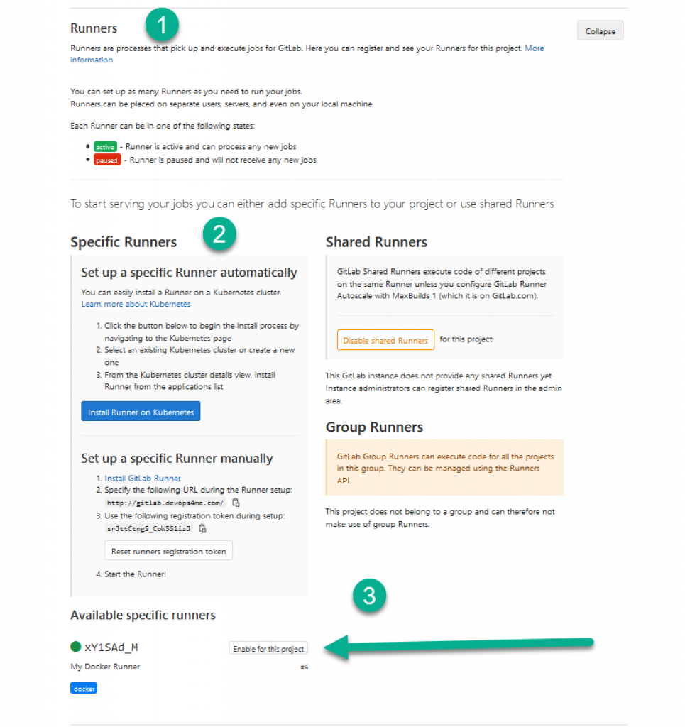 Step 3: Set up GitLab Runner to run jobs in the CI/CD pipeline. You can access this Runner at Setting -> CI / CD -> Runner.
