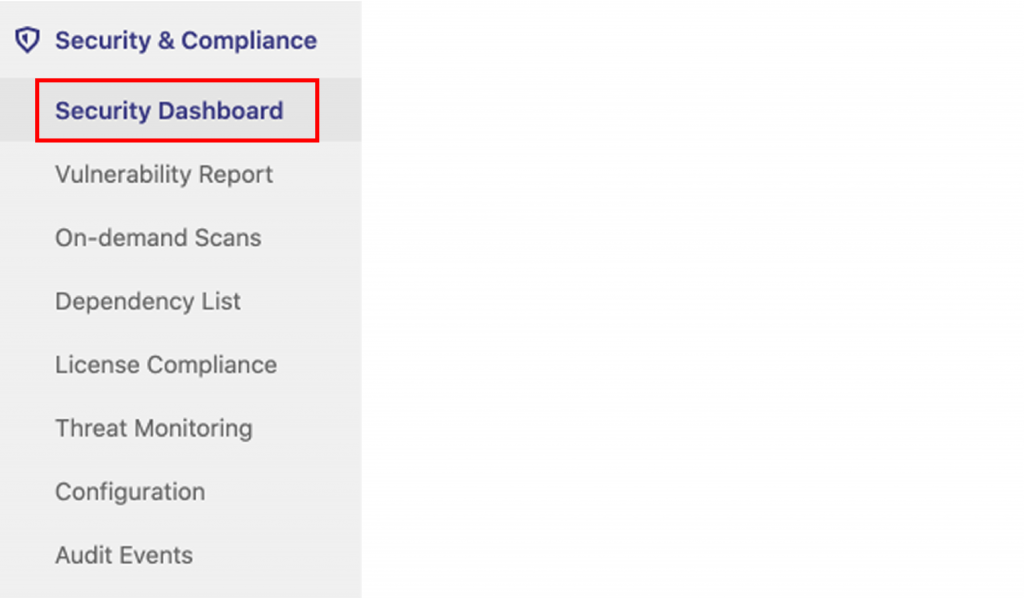 Access your Security Dashboard and other security options using the left-hand menu in GitLab.