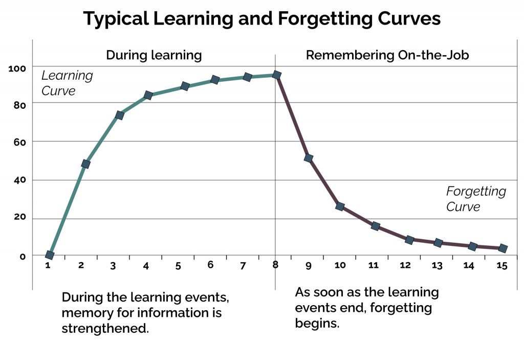 Space it Out: Learning transfer is impossible if learners forget what they learned in training. Use spaced repetition in your training program to minimize the forgetting curve. For example, send snapshots of learning content before the main training event, and follow up with detailed summaries of key topics after training. Will Thalheimer, in his 2006 work, “Spacing Learning Events Over Time: What the Research Says,” identifies that although learning and memory are vital during a training event, knowledge is rapidly forgotten afterward.