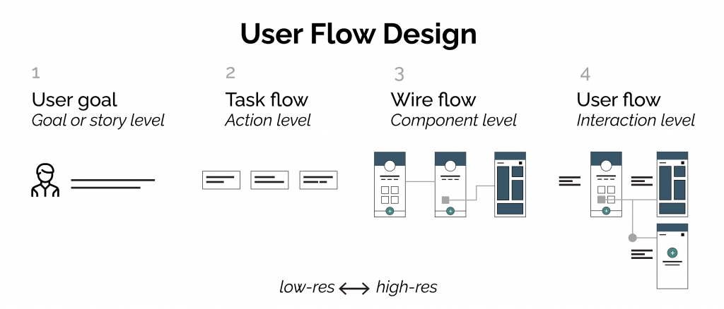 • User flows – Define the paths that the user travels, starting from an entry point to the end goal to complete a user interface task.