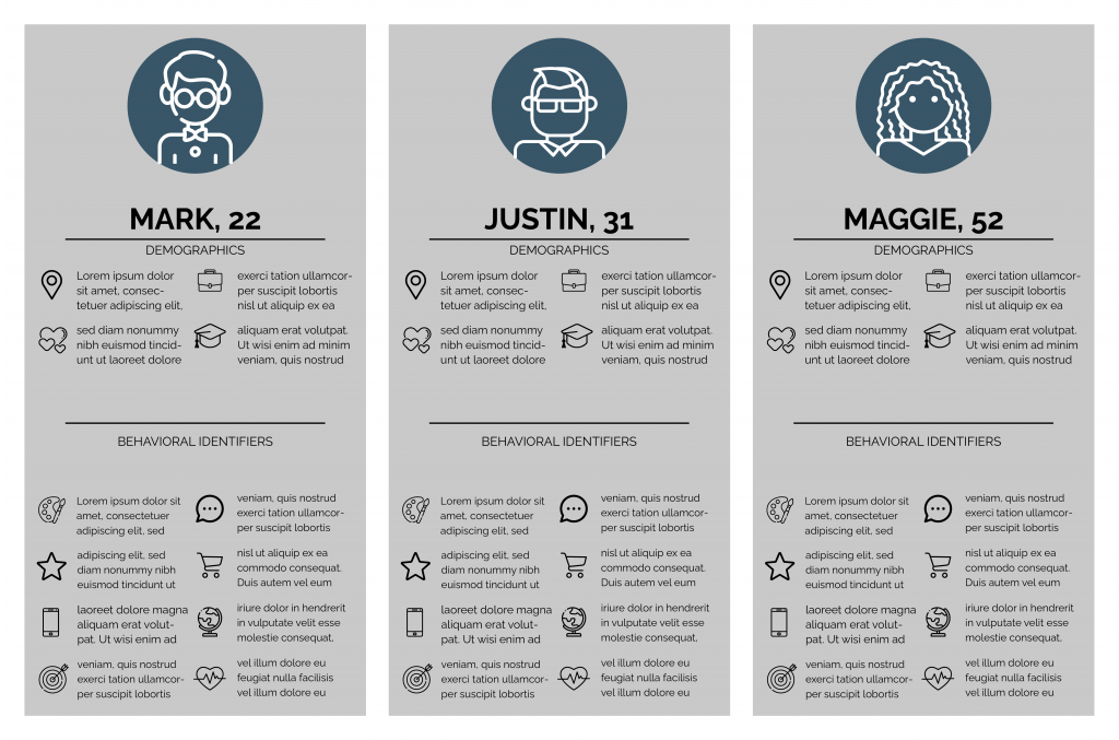 Personas – Defines a character representing a potential user of your website or app to help the design team target designs around users.