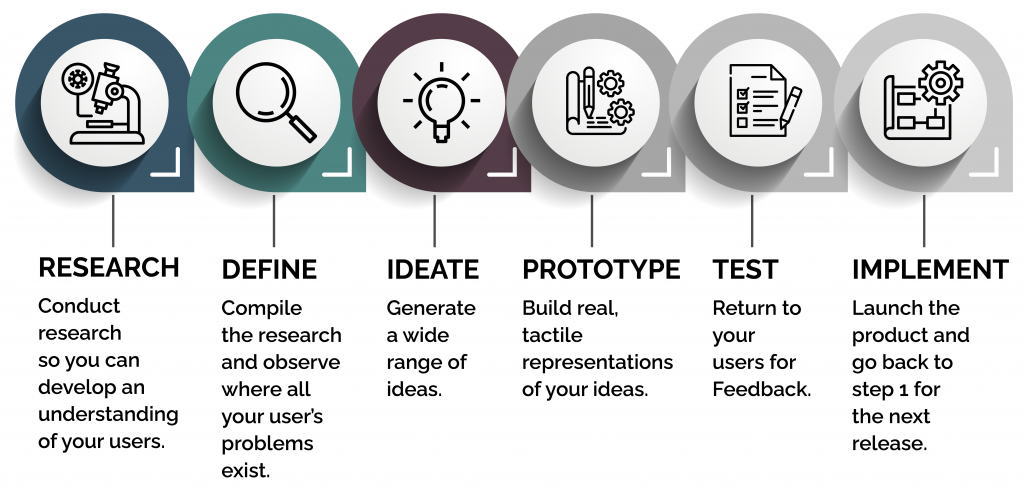 User research – Define the ways and methods of studying users and their requirements to add context, find problems and their solutions.