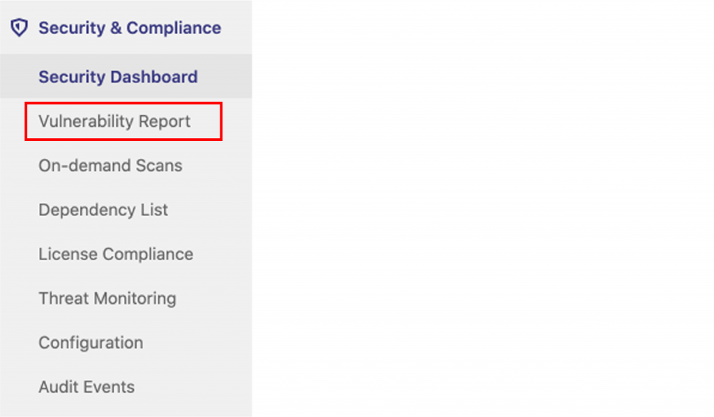 You can view the vulnerability report by clicking on Security & Compliance->Vulnerability Report