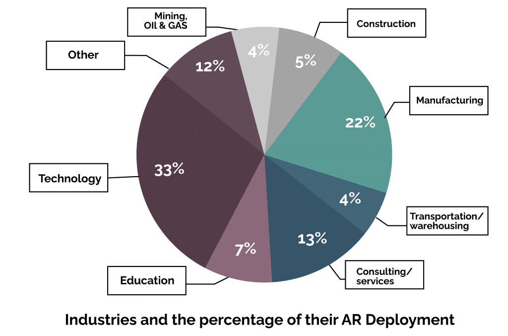 According to Capgemini’s recent study, these are the percentages of AR Deployment being done currently in various industries.