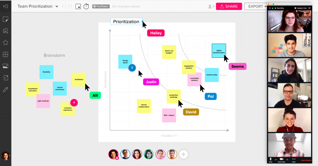 We recommend using digital whiteboards to accomplish better understanding and decision-making when in a remote space. Cloud-based tools help share notes, documents, and digital resources to keep everything accessible across the team and improve transparency. They even help in the concurrent access of data and instantly implement changes at a centralized file location remotely.