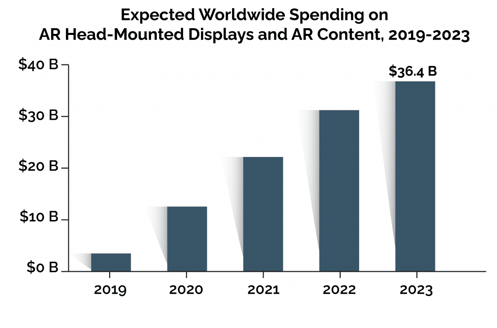 According to Greenlight Insights, the worldwide spending on AR content and head-mounted displays will likely reach $36.4 billion in 2023.