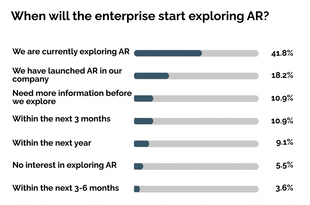 At the 2019 Enterprise Wearable Technology Summit, a broad swathe of organizations took part in a survey on when to start exploring AR. Here are the numbers on the different scopes of Exploration.